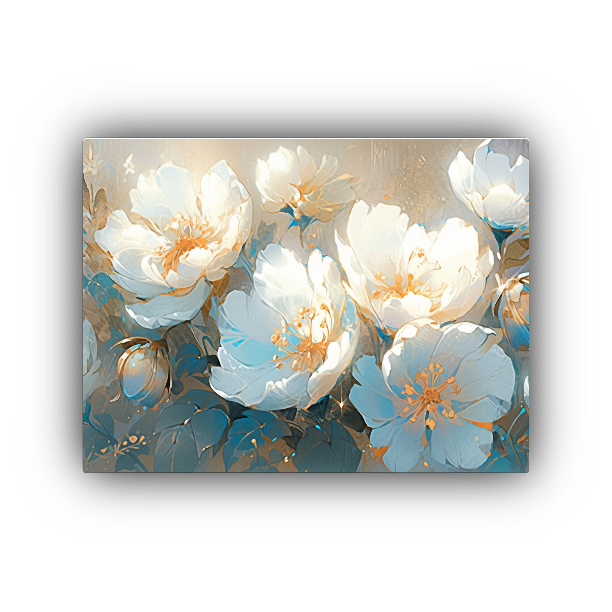 Cuadro Composición Regalo Turquesa Y Oro Con Flores En Lienzo Decoración