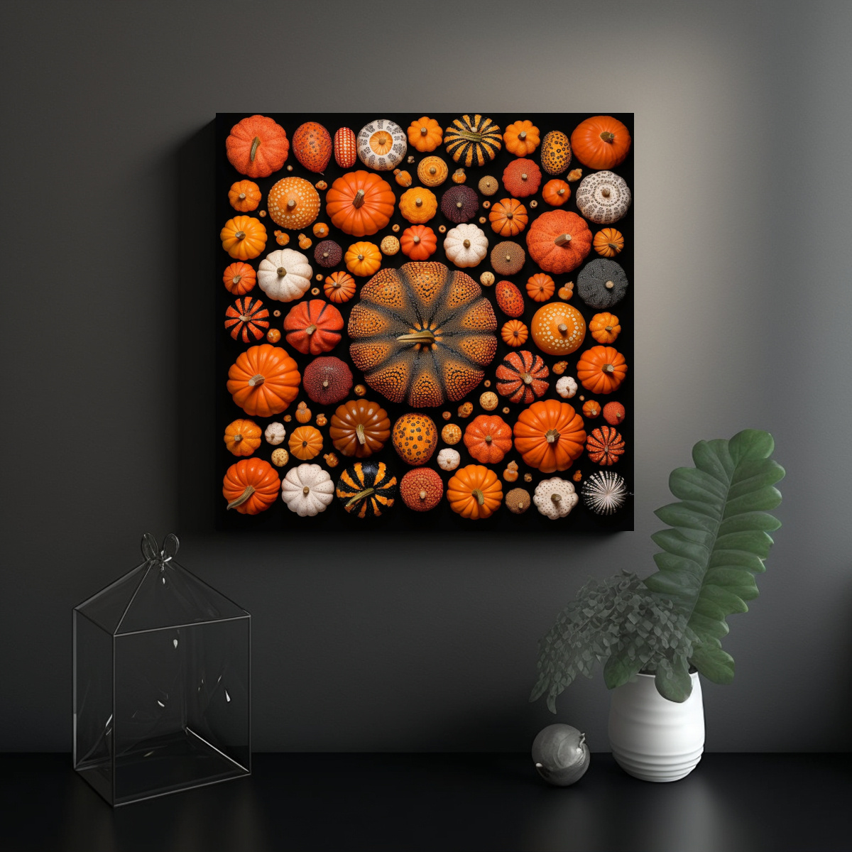 Este cuadro con calabazas knolling de Yayoi Kusama sería perfecto para decorar tu sala de estar o comedor, creando un punto focal llamativo y elegante Combínalo con muebles en tonos neutros para resaltar su belleza y darle un toque artístico a tu hogar
