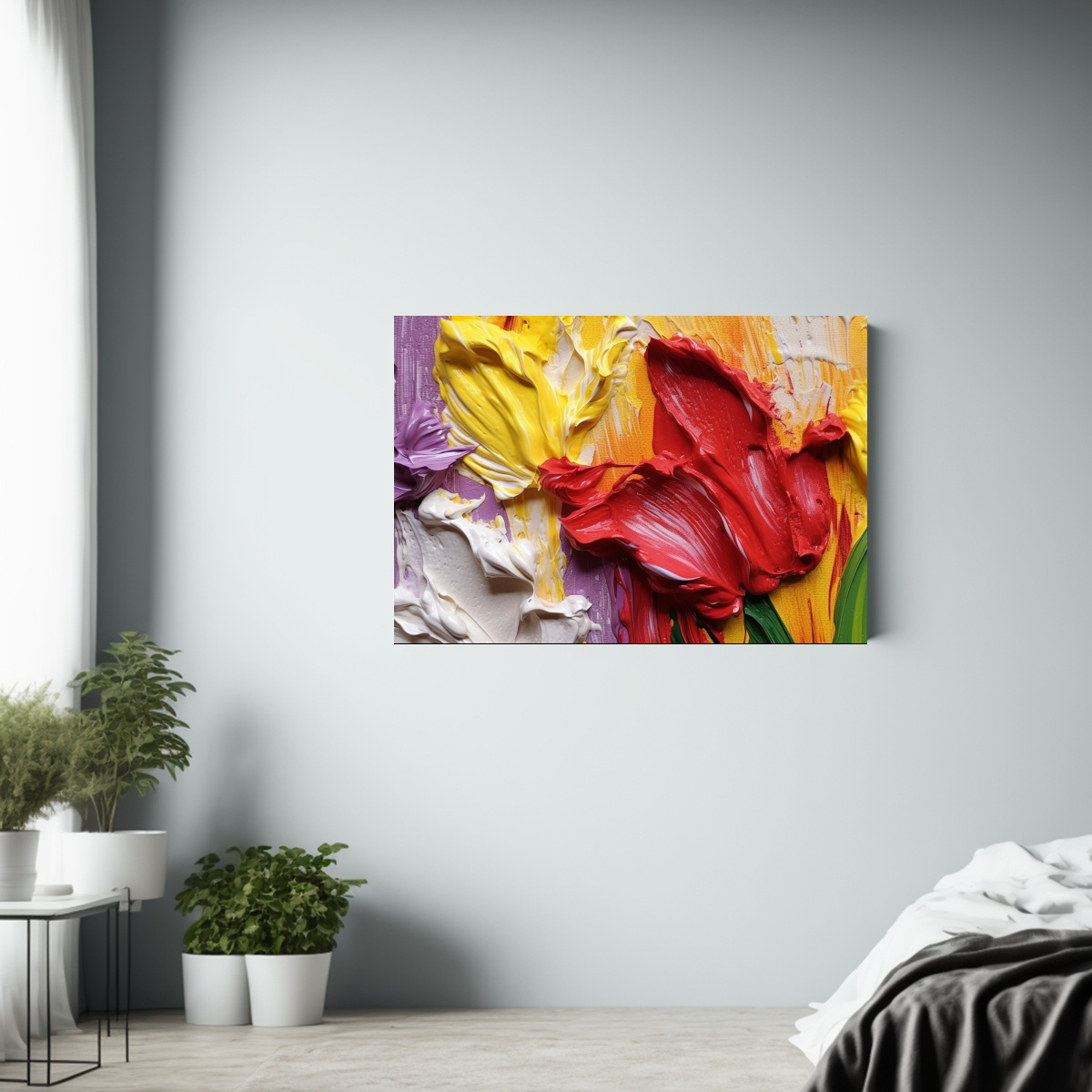 Para realzar la decoración de tu baño, coloca este cuadro abstracto tulipán rojo sobre una pared de tonos neutros como blanco o gris claro El contraste de colores resaltará su belleza y aportará un toque de sofisticación y frescura al ambiente ¡Atrévete a darle un toque de arte a uno de los espacios más íntimos de tu hogar!