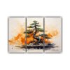 Cuadro Concepto Comedor: Set 3 Telas En Bastidor Árbol Bonsái En Amarillo Y Verde Neonoir