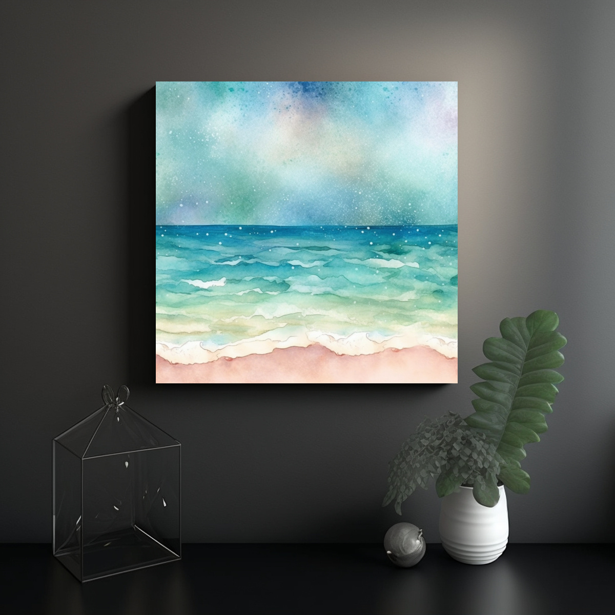 Coloca este Cuadro Concepto Refinado en la pared principal de tu sala de estar para crear un punto focal elegante Combina los tonos plateados y turquesas con cojines y accesorios en tonos beige y gris para lograr una decoración armoniosa y refinada
