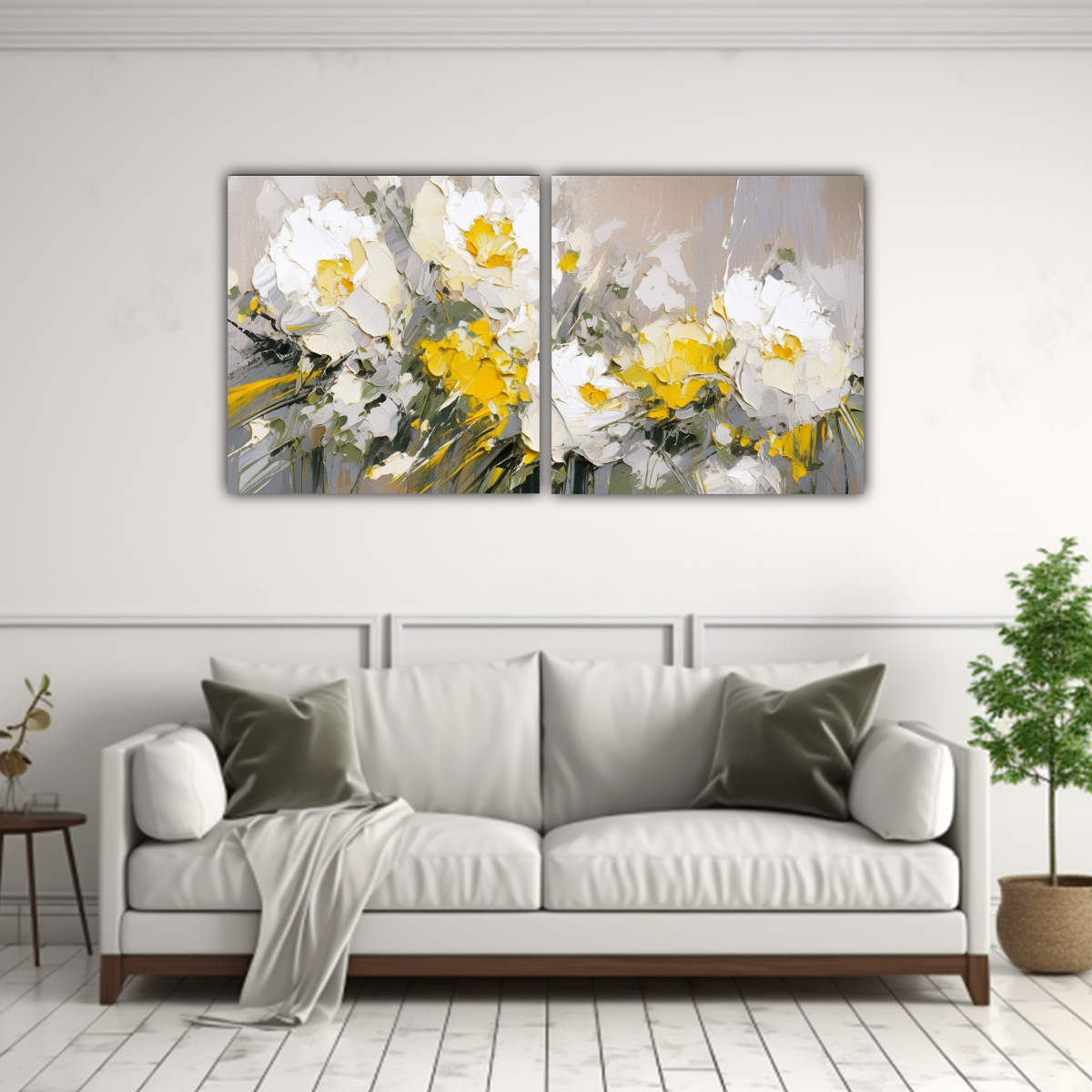 Cuadro Conceptual Amarillo Y Plateado De Flores En Lienzo Decorativo