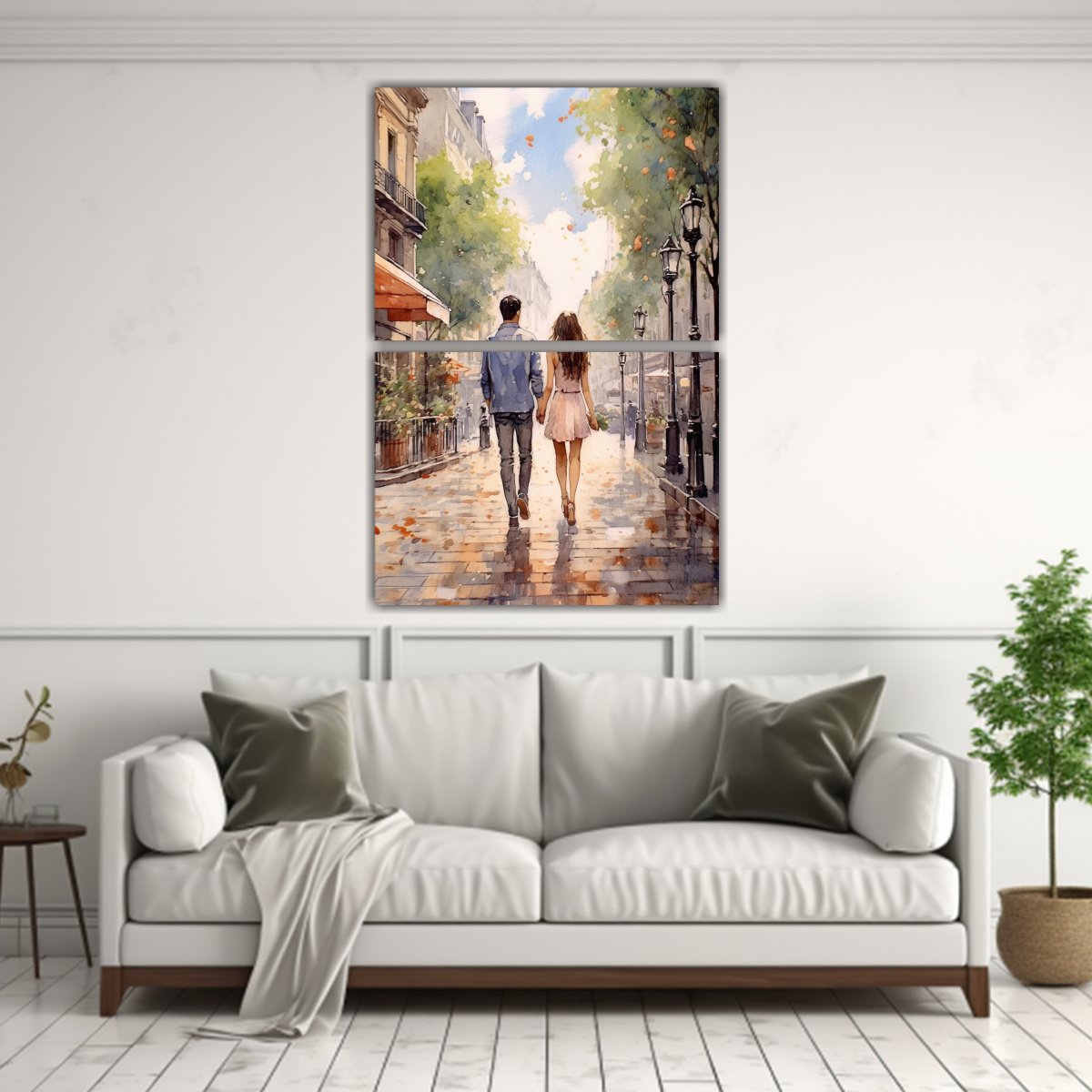 Este Cuadro Conceptual de Pareja Enamorada en la Distancia sería perfecto para colocar en el dormitorio principal, sobre la cama La combinación de colores neutros como el Gris, Beige y Azul Marino grisaceo le dará un toque de elegancia a la habitación Además, el diseño exclusivo y moderno del cuadro creará un ambiente romántico y acogedor ¡Atrévete a añadir un toque de amor a tu hogar con este hermoso cuadro!