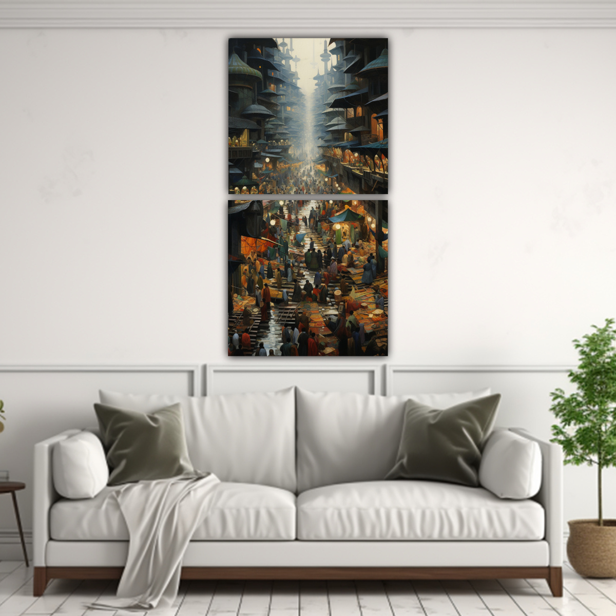 Cuadro Conceptual Dimensiones: El Ritmo Abstracto De Un Bullicioso Mercado Con Pinturas Decorativas Ven