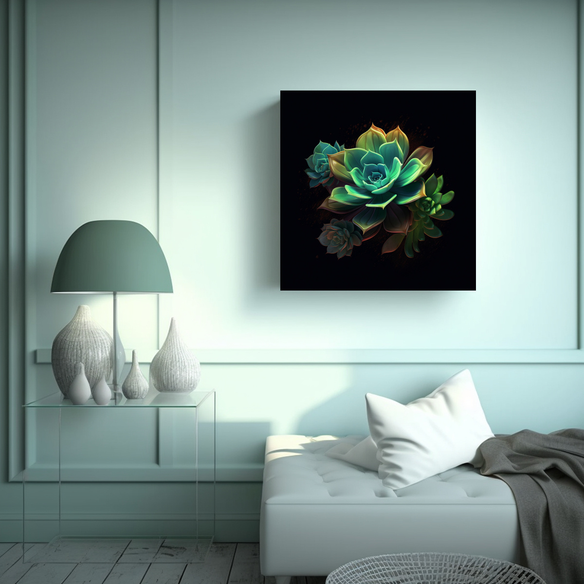 Cuadro Contemporáneo De Planta Suculenta En Patrón Intenso Para Interiores