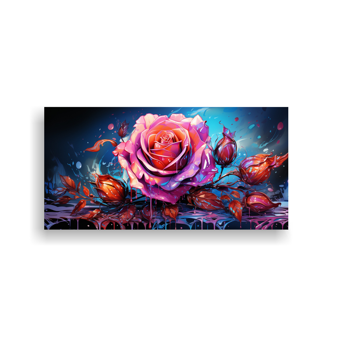 Cuadro Creativa Habitación Con Rosa Coloreada Y Goteos Pintados En Los Pétalos En Pinturas De Decoración.