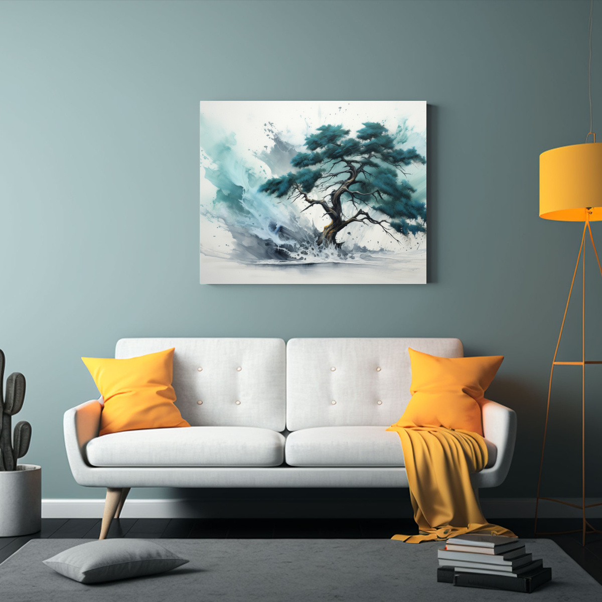 Renueva tu espacio con el Cuadro Creativo de un Pino en tonos Turquesa y Negro Impreso en tela de alta calidad con bastidor de madera Añade un toque moderno y elegante a tu decoración