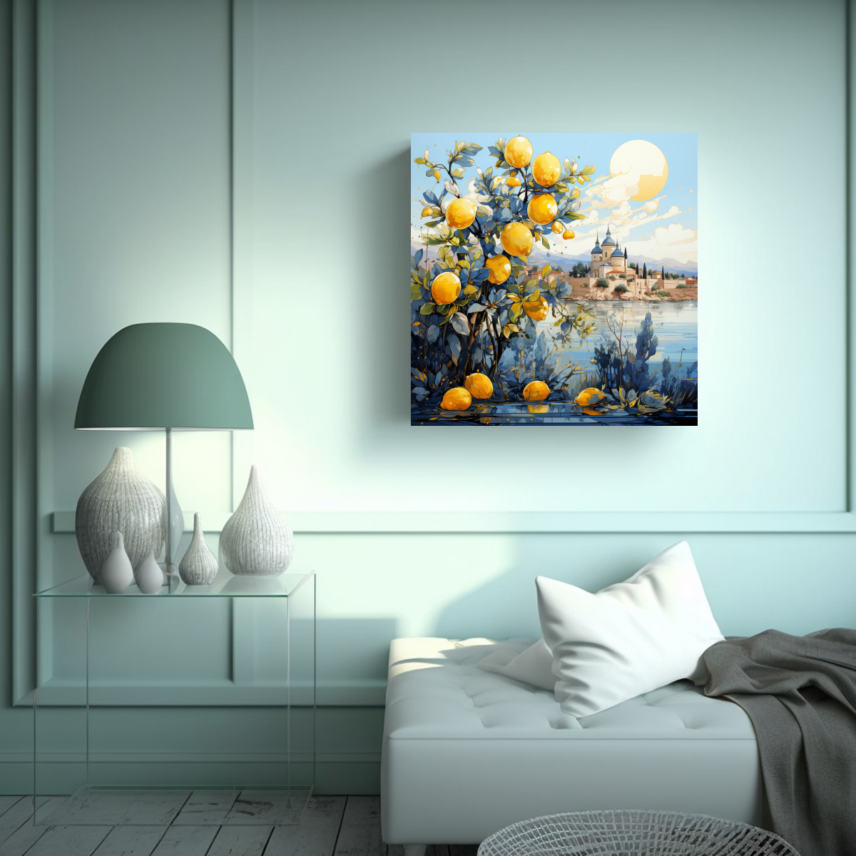 Cuadro Creativo Baño Árbol De Limón Colores Dorado Y Azul Pintura Abstracta Agua
