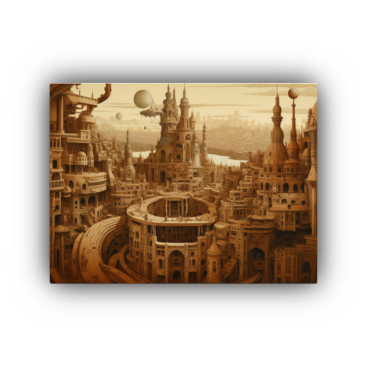 Cuadro Creativo: Ciudad Fantástica En Tonos Marrones