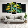 Cuadro Creativo De Bonsái Amarillo Y Verde: Cinco Lienzos Neonoir