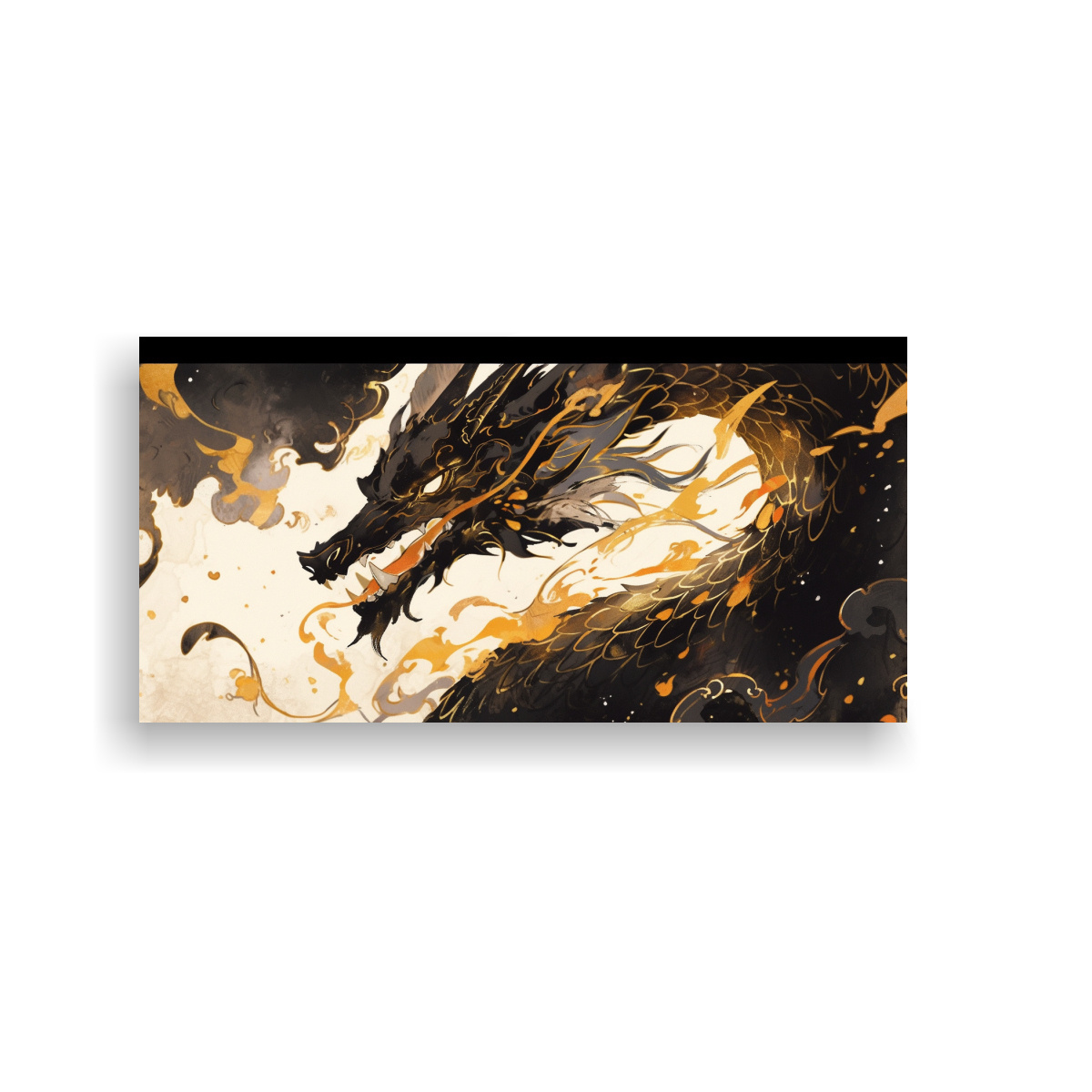 Cuadro Creativo: Dragón En Acuarelas Y Tonos Dorados Con Atmósfera Neonoir