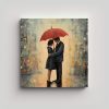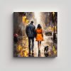 Cuadro Creativo Para Oficina Pareja Paseando Con Perro Bajo La Lluvia En La Calle, Pintura Al óleo