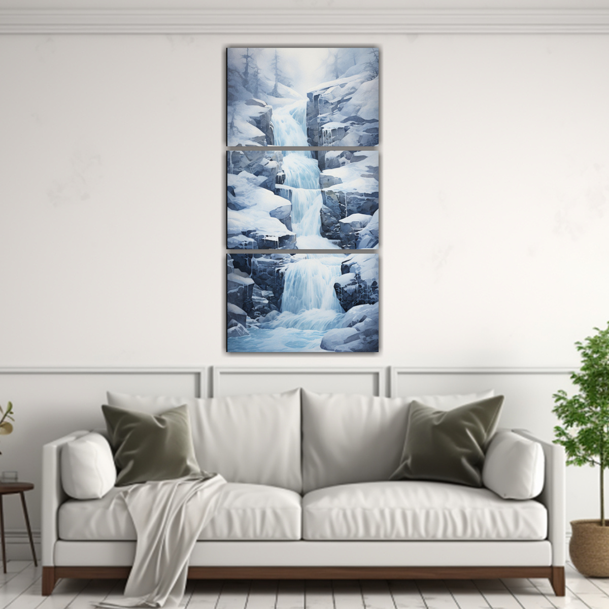 Coloca este cuadro en la sala de estar para crear un ambiente de serenidad y elegancia Combina perfectamente con muebles en tonos neutros y elementos decorativos en plata para resaltar su belleza abstracta ¡Transforma tu espacio con estilo con este cuadro de cascada congelada en el tiempo!