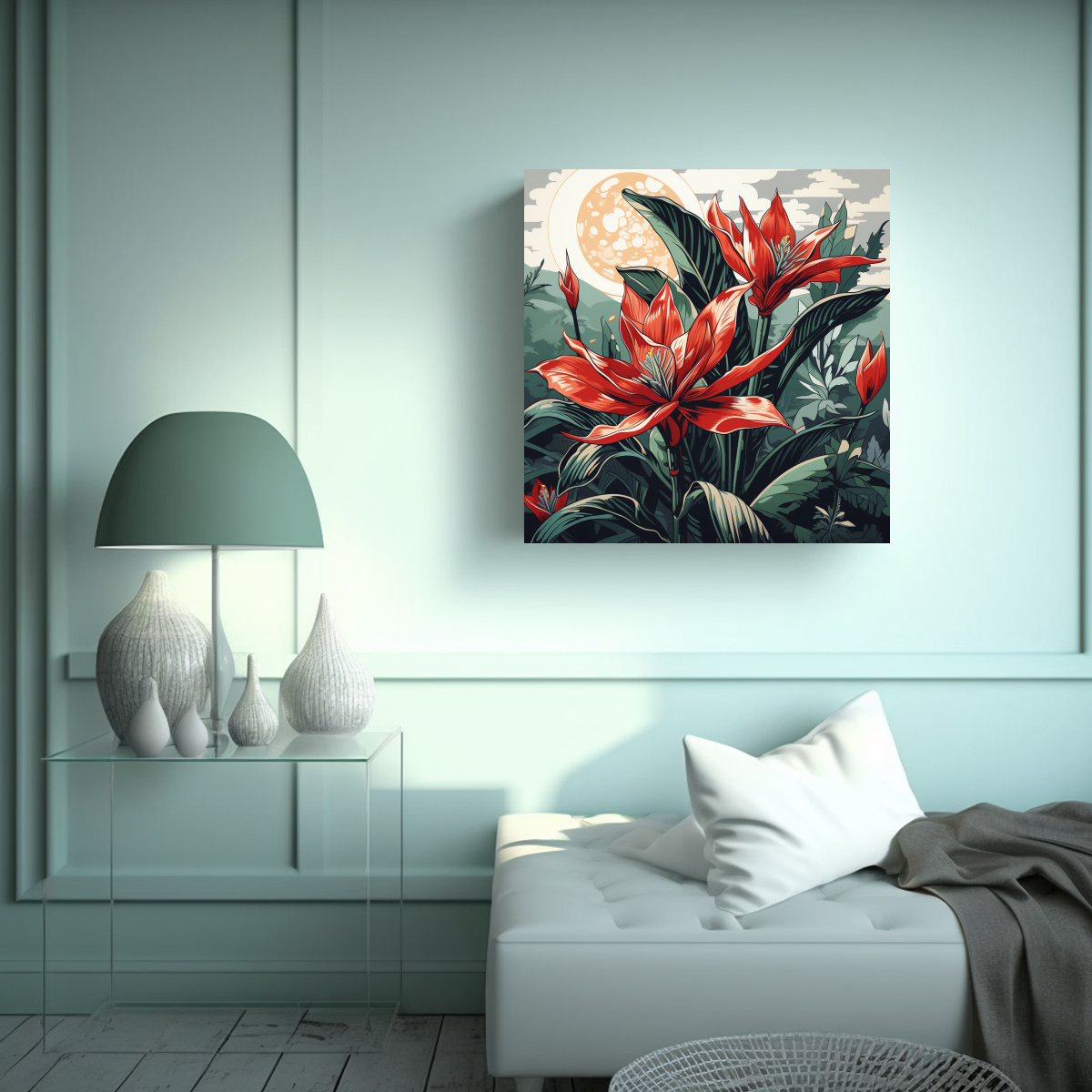 Este cuadro es ideal para colocarlo en el salón o comedor, combinándolo con muebles y accesorios en tonos neutros como beige, gris o plateado También puedes añadir elementos en color coral para crear contraste Su diseño exclusivo y los colores llamativos de las hojas de heliconia le darán vida y personalidad a tu espacio