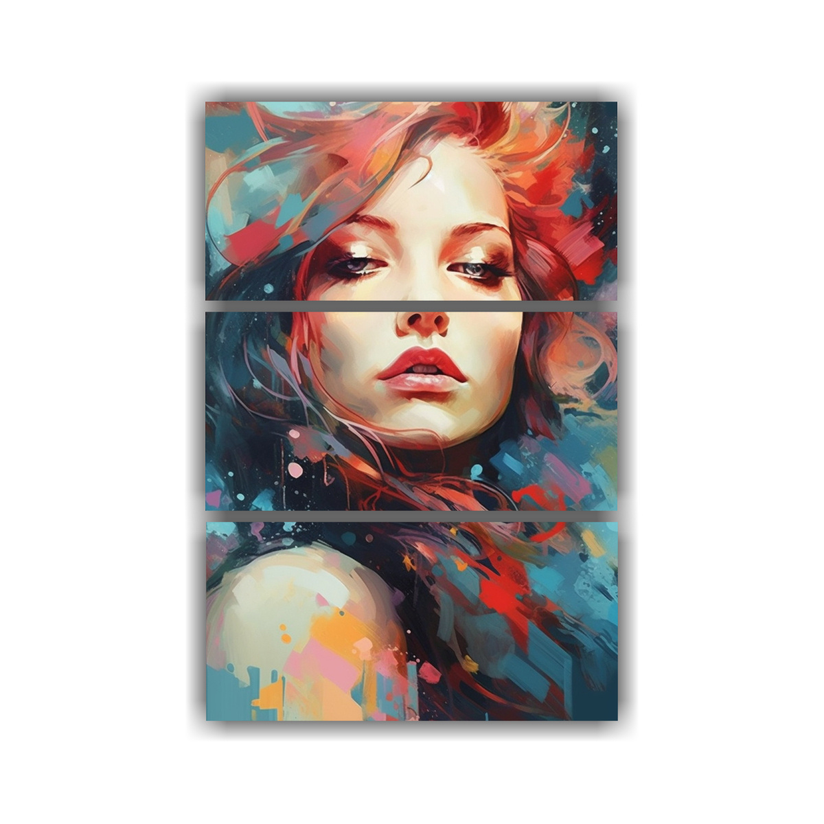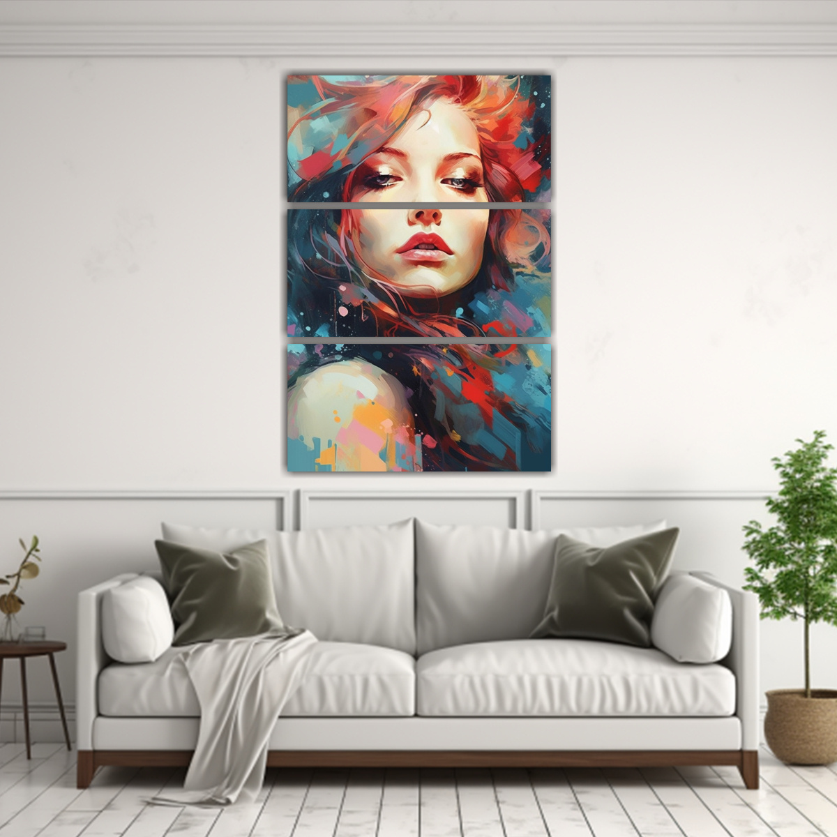 Coloca el Cuadro Intensidad Mujer Abstracta en tu sala de estar para darle un toque de elegancia y modernidad Combínalo con muebles en tonos neutros como blanco o gris para resaltar los colores intensos del cuadro ¡Será el centro de atención de tu espacio!