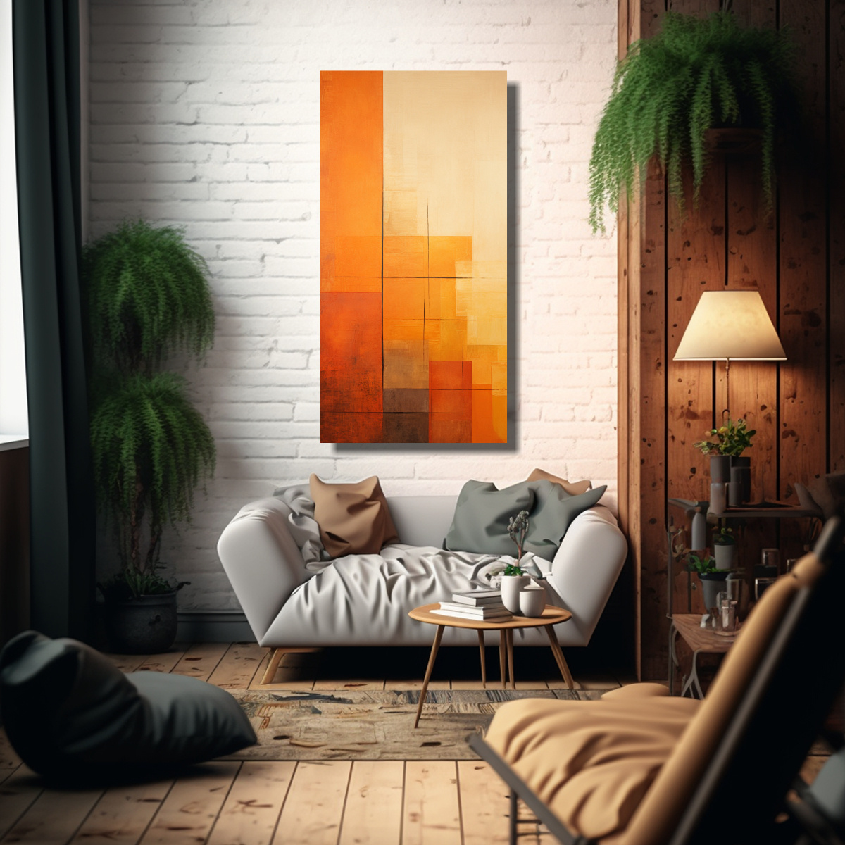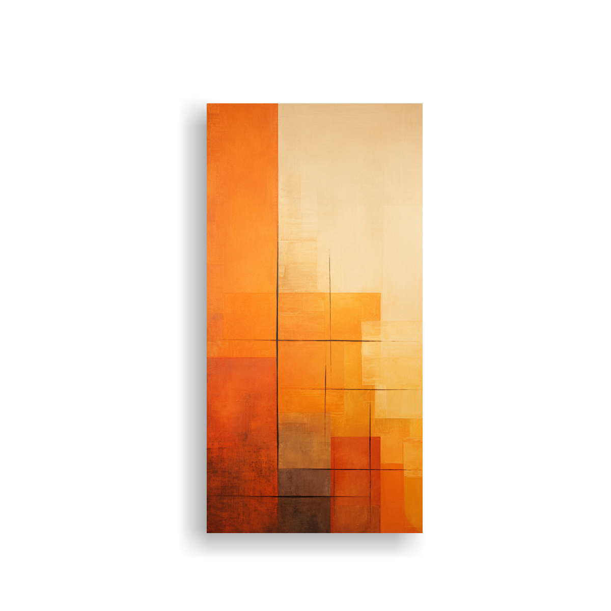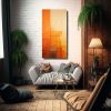 Cuadro De Abstracción Geométrica En Tonos De Naranja Atardecer En Tela Vertical