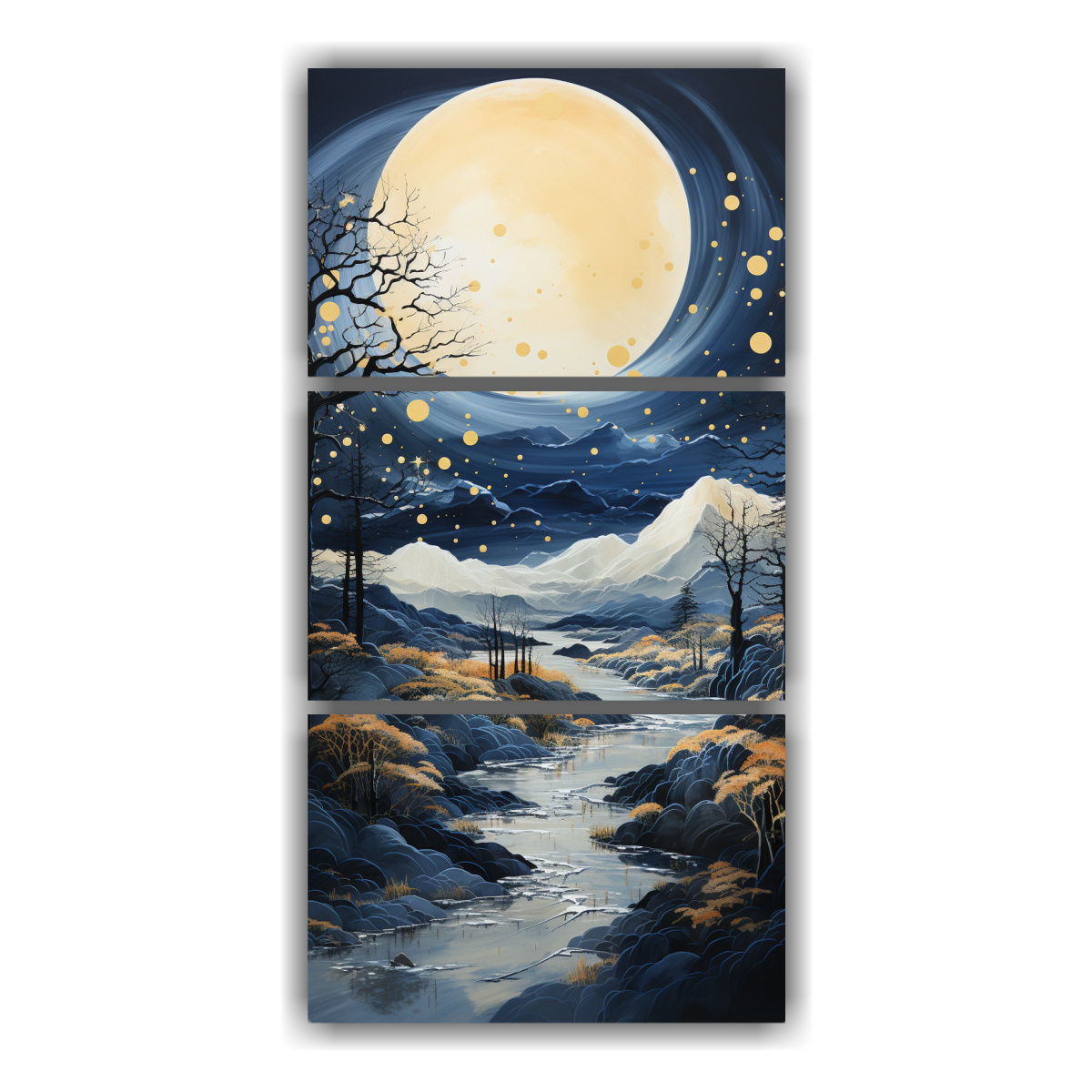 Decora tu espacio con este cuadro de diseño exclusivo que captura la serenidad de la noche Resistente a painting with a moon near the mountains with st Envío rápido y gratuito en Santiago, con opciones express a regiones