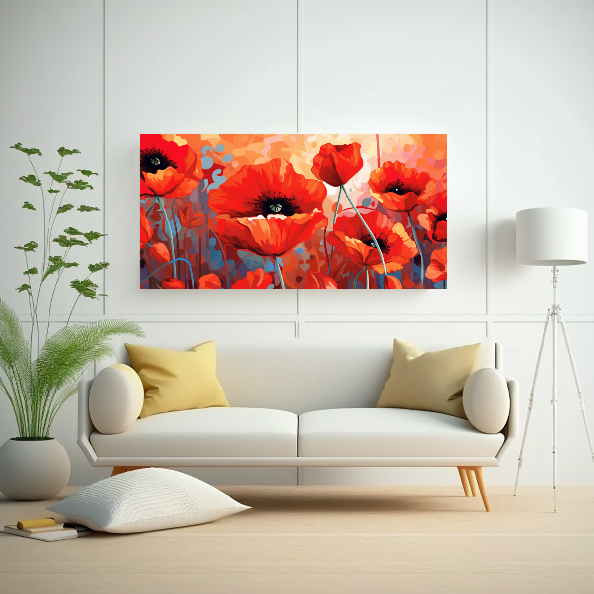 Decora tus espacios con el cuadro de amapolas grandes estilo visual vexel en lienzo de DecoCuadros Crea un aspecto 3D más realzado y moderno con nuestro lienzo de galería de alta calidad ¡Compra ahora y aprovecha nuestras entregas rápidas y gratuitas en Santiago!