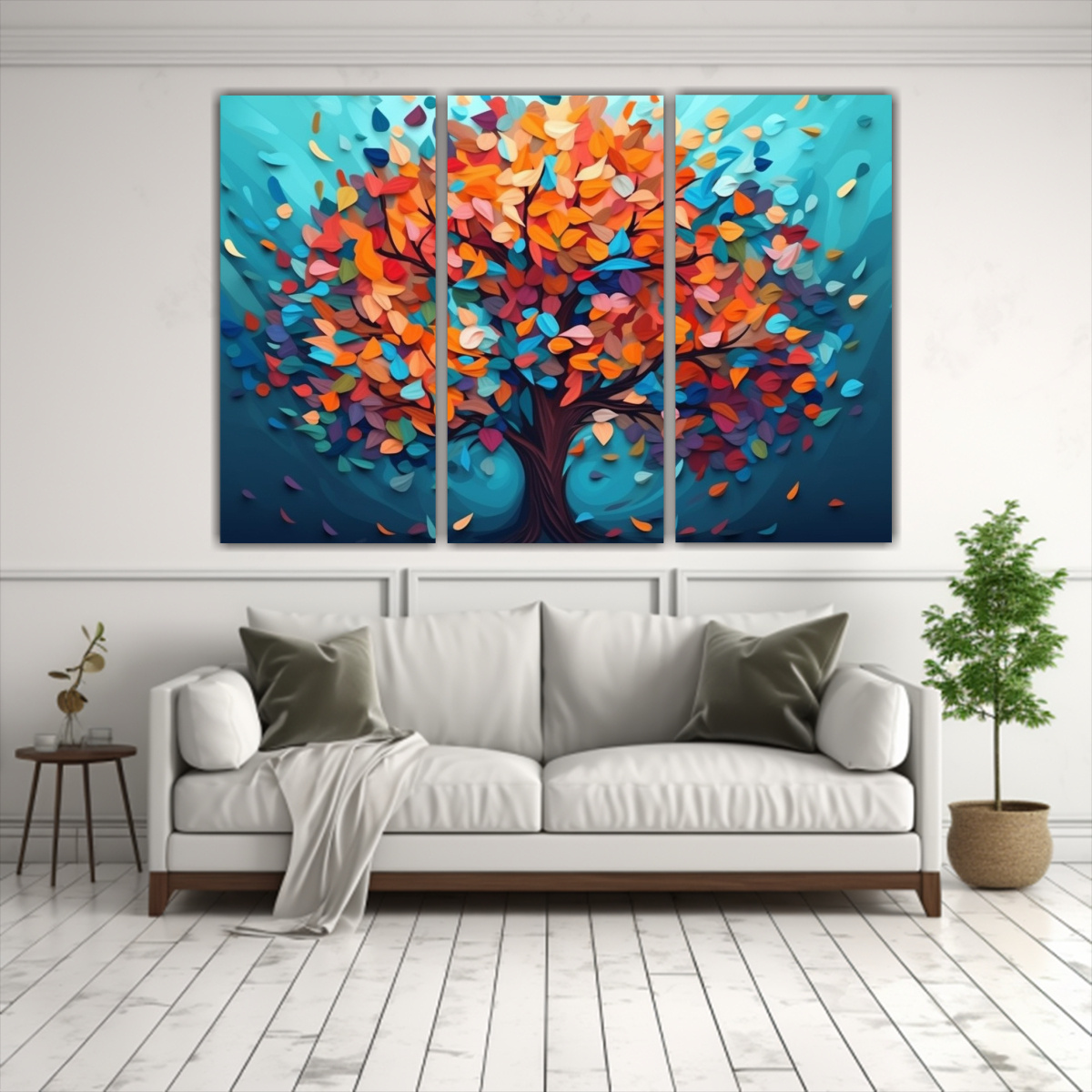Para resaltar la belleza del Cuadro de árbol colorido, colócalo en un espacio neutral donde pueda ser el centro de atención Ideal para salas de estar o dormitorios, combina perfectamente con muebles blancos o grises para un contraste elegante y moderno