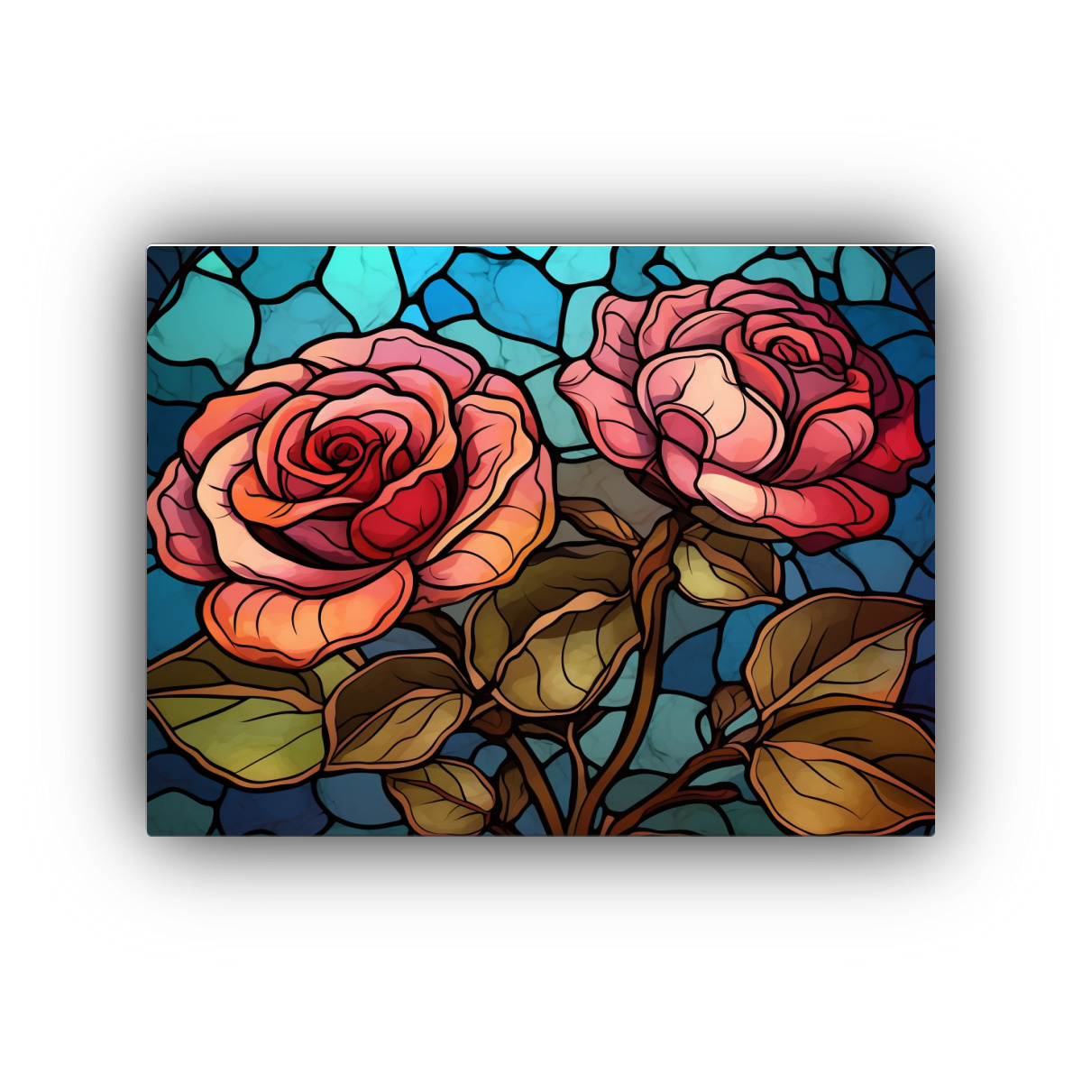 Cuadro De Arte 3D Con Rosas De Vidrio Manchado Decoración Creativa Para Pared