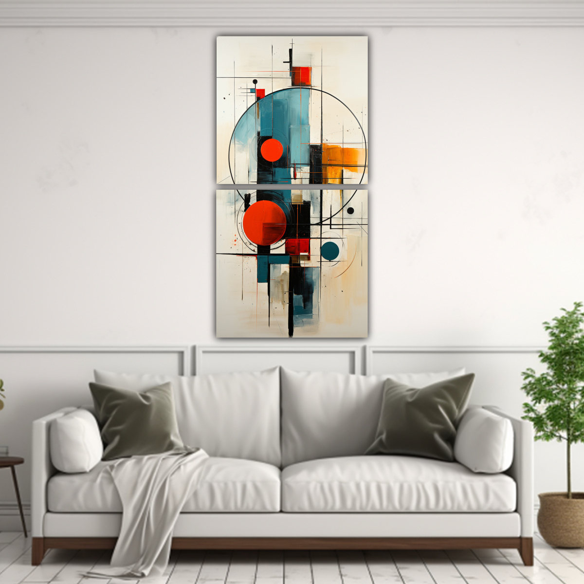 DecoCuadros ofrece el cuadro de arte abstracto moderno Midcentury de Dos Artes de Pared Con una combinación de colores en tonos de Azul Marino grisáceo, Beige, Carmesí, Mostaza, Gris, Turquesa, Plateado y Menta, este cuadro es perfecto para darle un toque de alegría y estilo a cualquier espacio Hecho con materiales de alta calidad y con un bastidor de madera resistente, este cuadro es duradero y de larga duración Agrega un toque moderno y sofisticado a tu hogar u oficina con este cuadro único DecoCuadros ofrece envíos express a regiones para que puedas disfrutar de este hermoso cuadro en poco tiempo