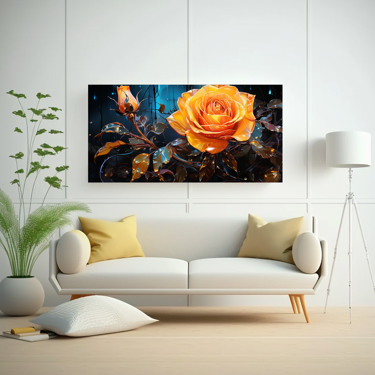 Cuadro De Arte De Pared Con Rosa Amarilla Brillante