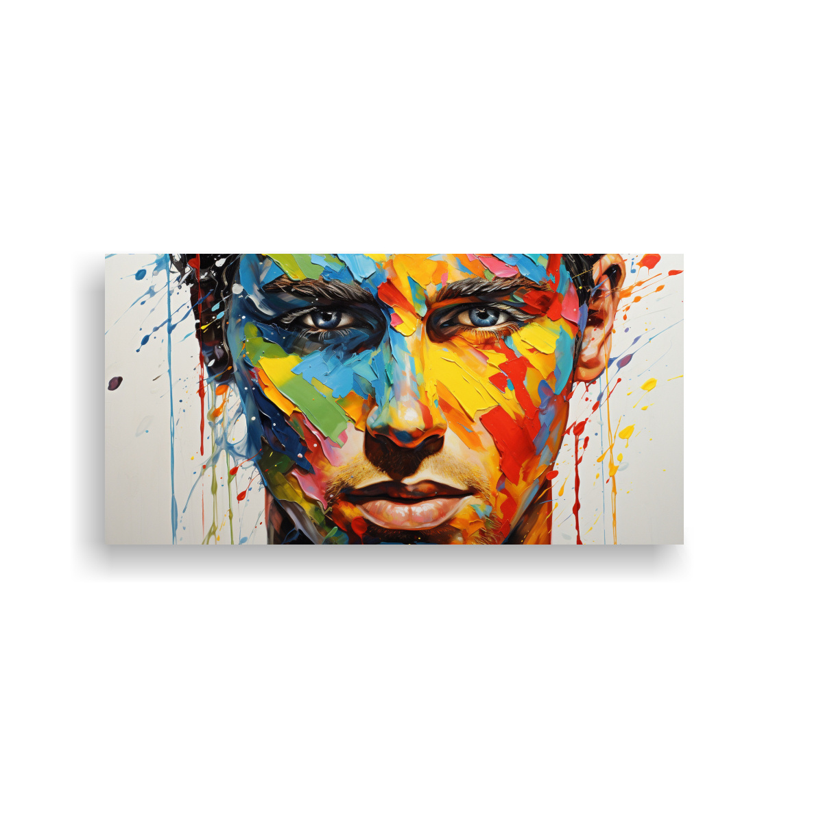 Cuadro De Arte De Pared Contornos Faciales Y Salpicaduras Doradas Y Arcoíris