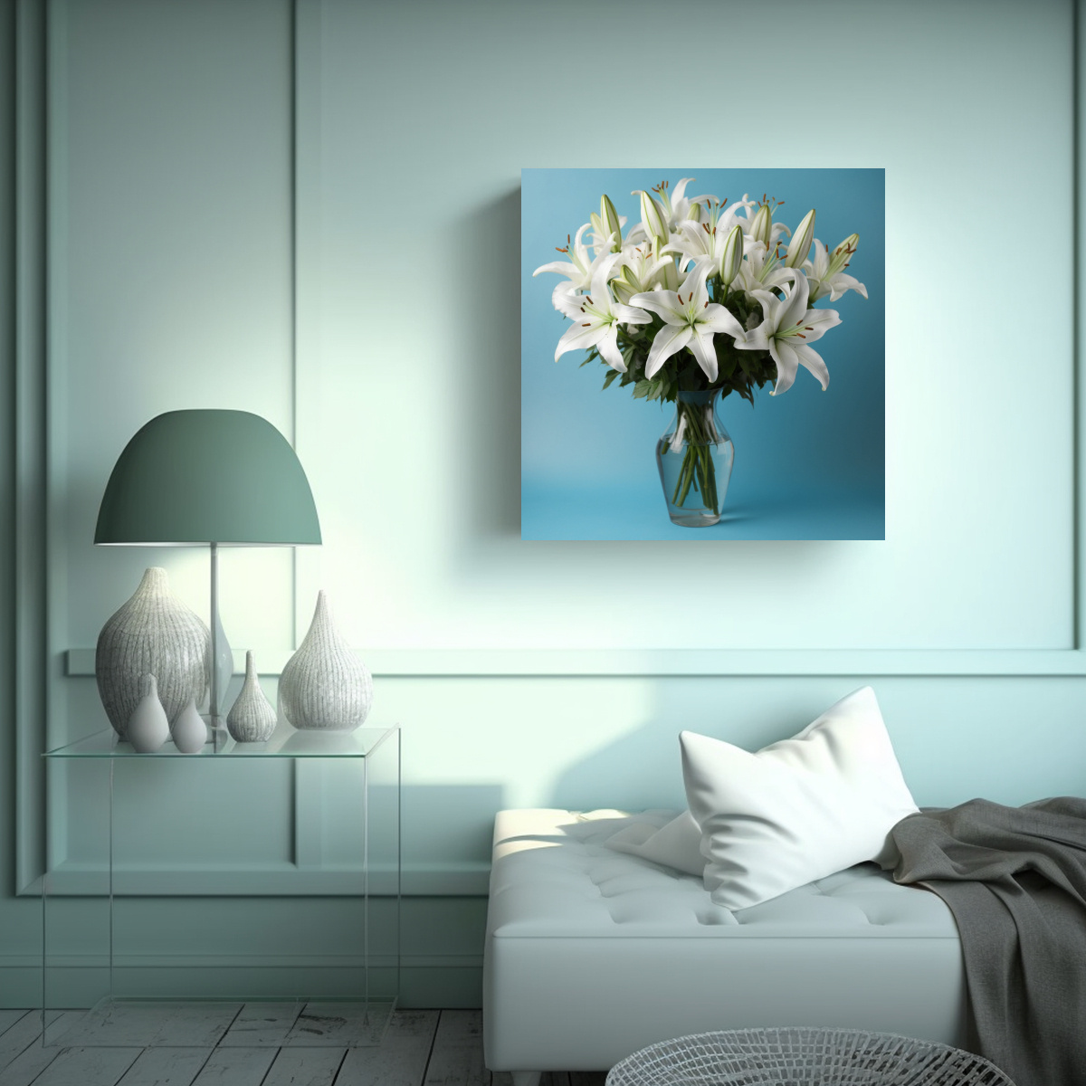 Cuadro De Arte Decorativo De Baño Con Bouquet De Lirios Blancos