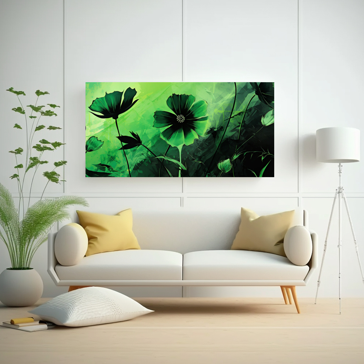 Cuadro De Arte Moderno Impactante, Colores Verde Y Negro, Ambiente Neonoir