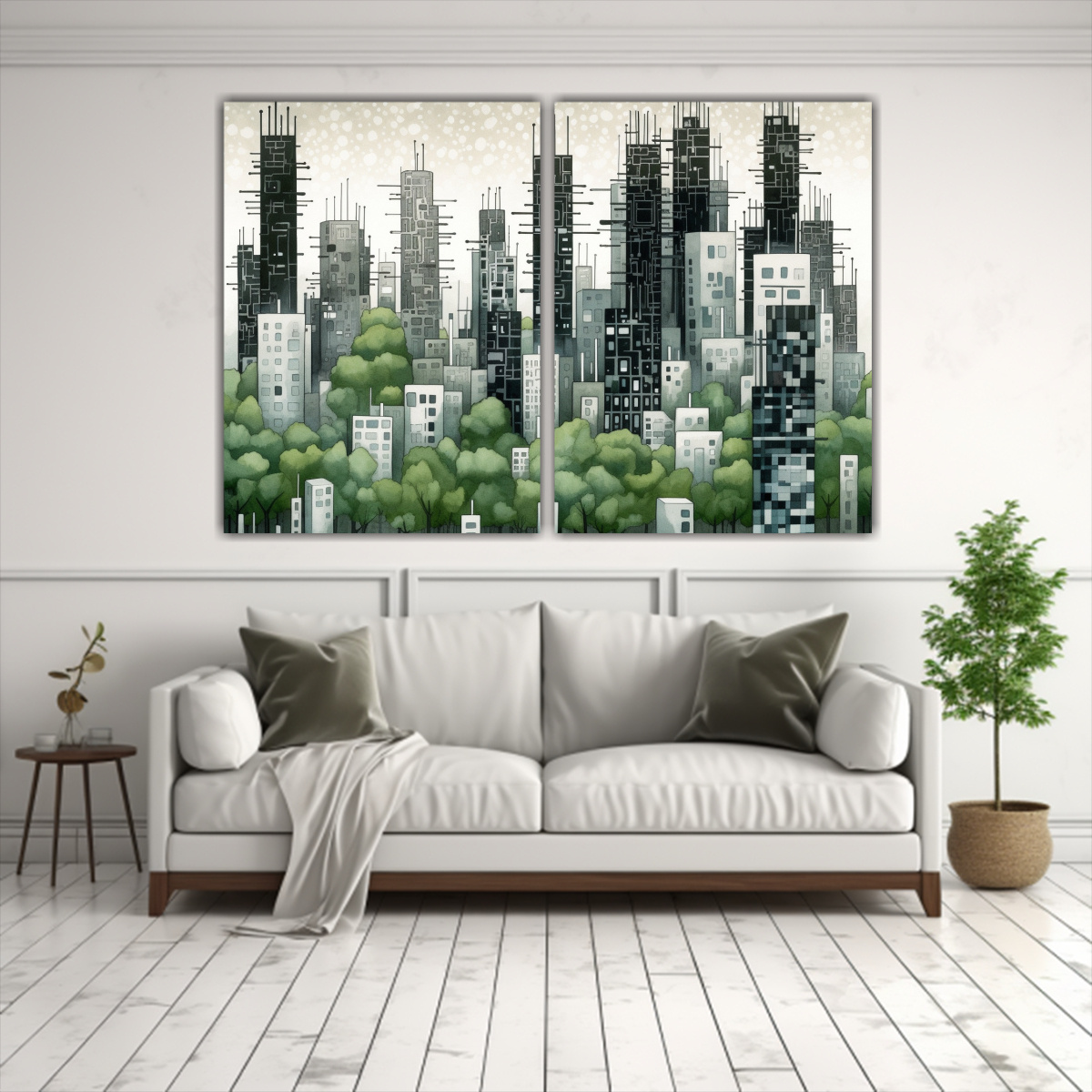 Coloca el cuadro de ciudad en blanco y negro en la sala de estar para crear un ambiente moderno y sofisticado Combínalo con muebles de colores neutros y accesorios en tonos plateados para resaltar la elegancia de la obra de arte