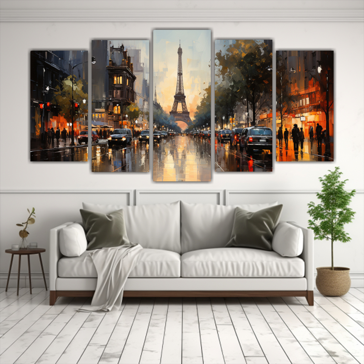 Cuadro De Ciudad En Lienzo: Original Y Patrón Intenso