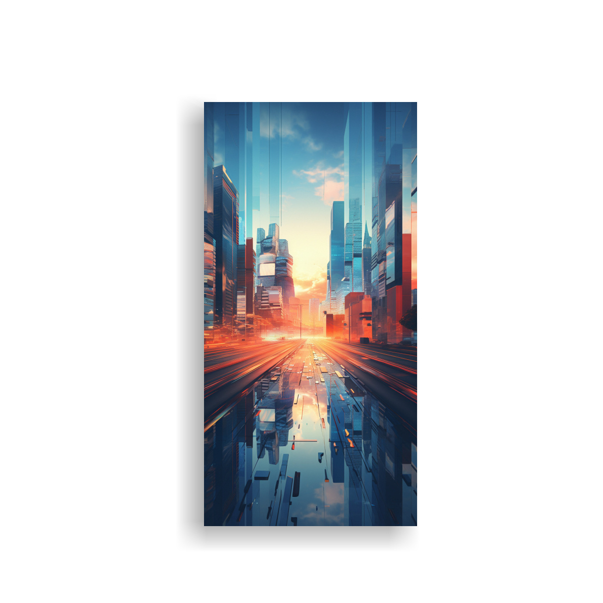 Cuadro De Ciudad Mañana Luz Reflejando Equilibrio Finas Líneas Arte