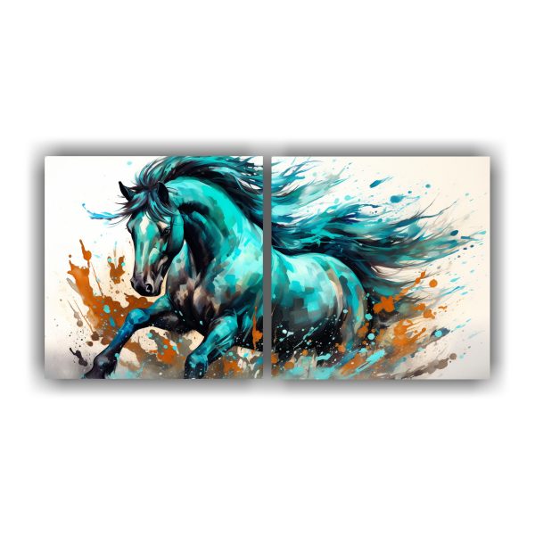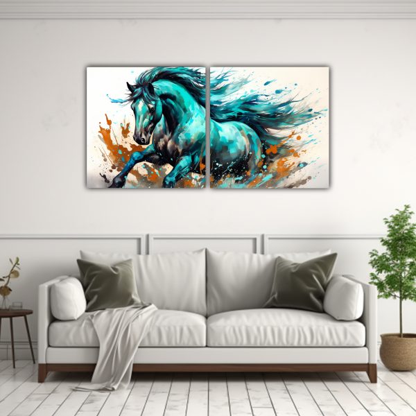 Cuadro De Clydesdale Horse En Acuarelas Y Turquesa: Composición Dinámica