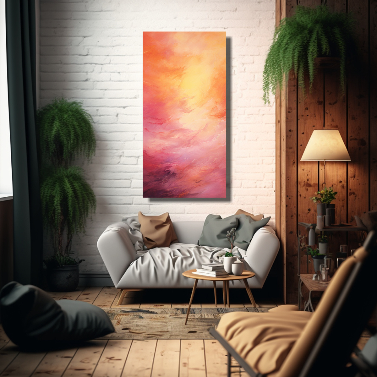 Este cuadro impactante de colores cálidos sería perfecto para decorar una sala de estar o un dormitorio Puedes colocarlo sobre un sofá o una cama para dar un toque vibrante y energético a la habitación Combínalo con cojines en tonos similares para crear una armonía visual en el espacio