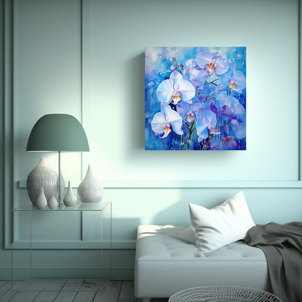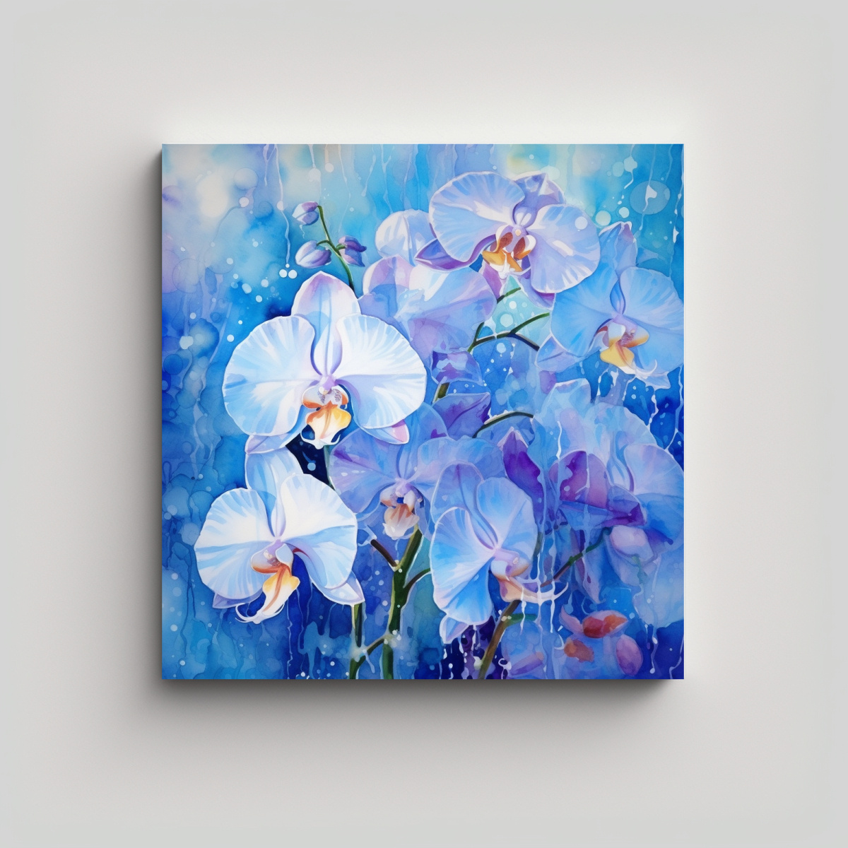 Cuadro De Composición Armónica De Orquídeas Azules, Pintura Abstracta En Acuarela