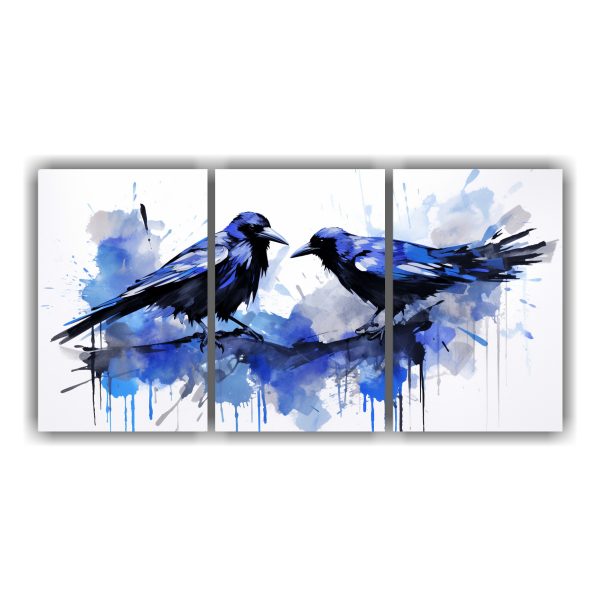 Cuadro De Cuervos Y Cuervos En Tonos Azules Para Decoración.