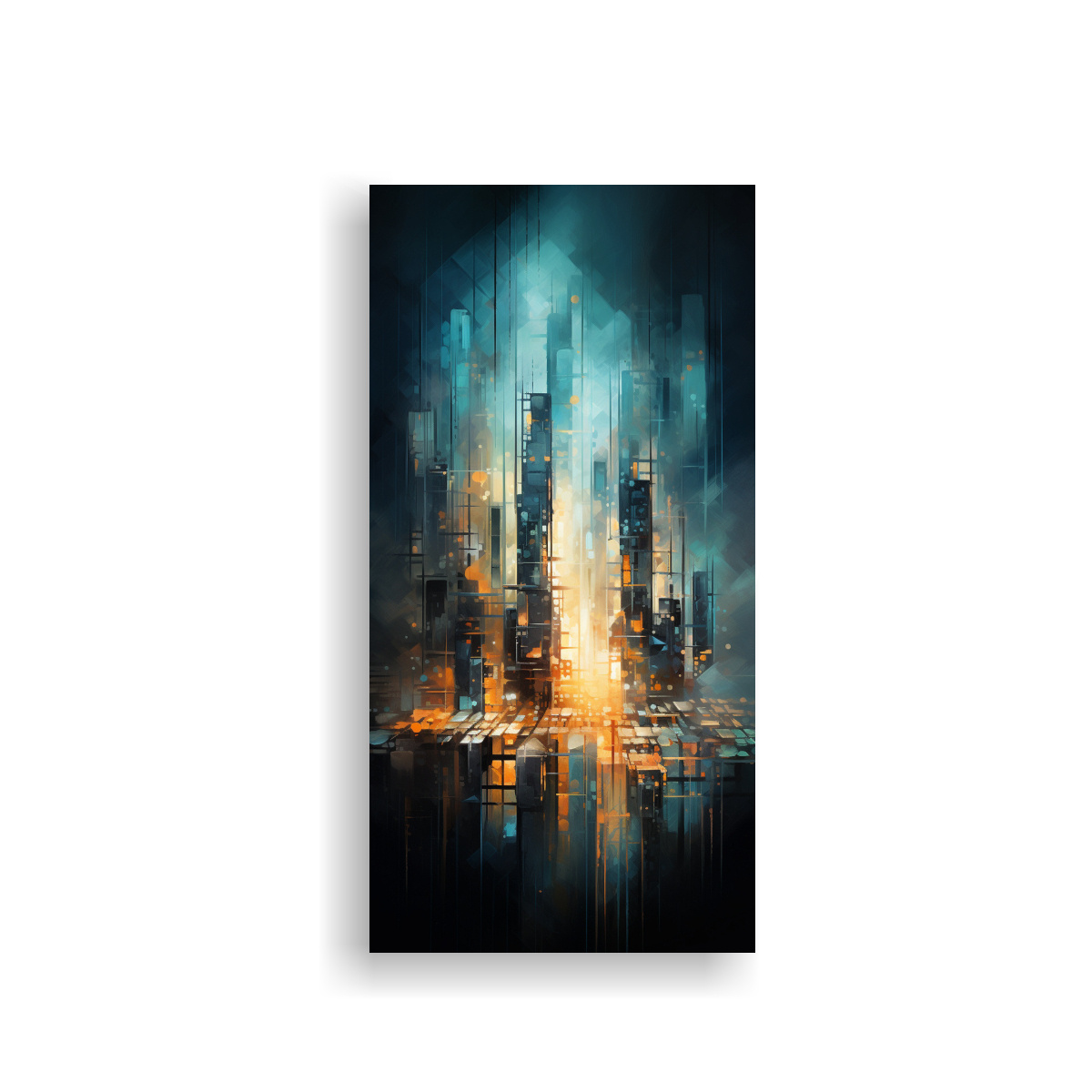 Cuadro De Decoración Abstracto De Ciudad Con Un Toque Futurista En Un Bastidor Decorativo