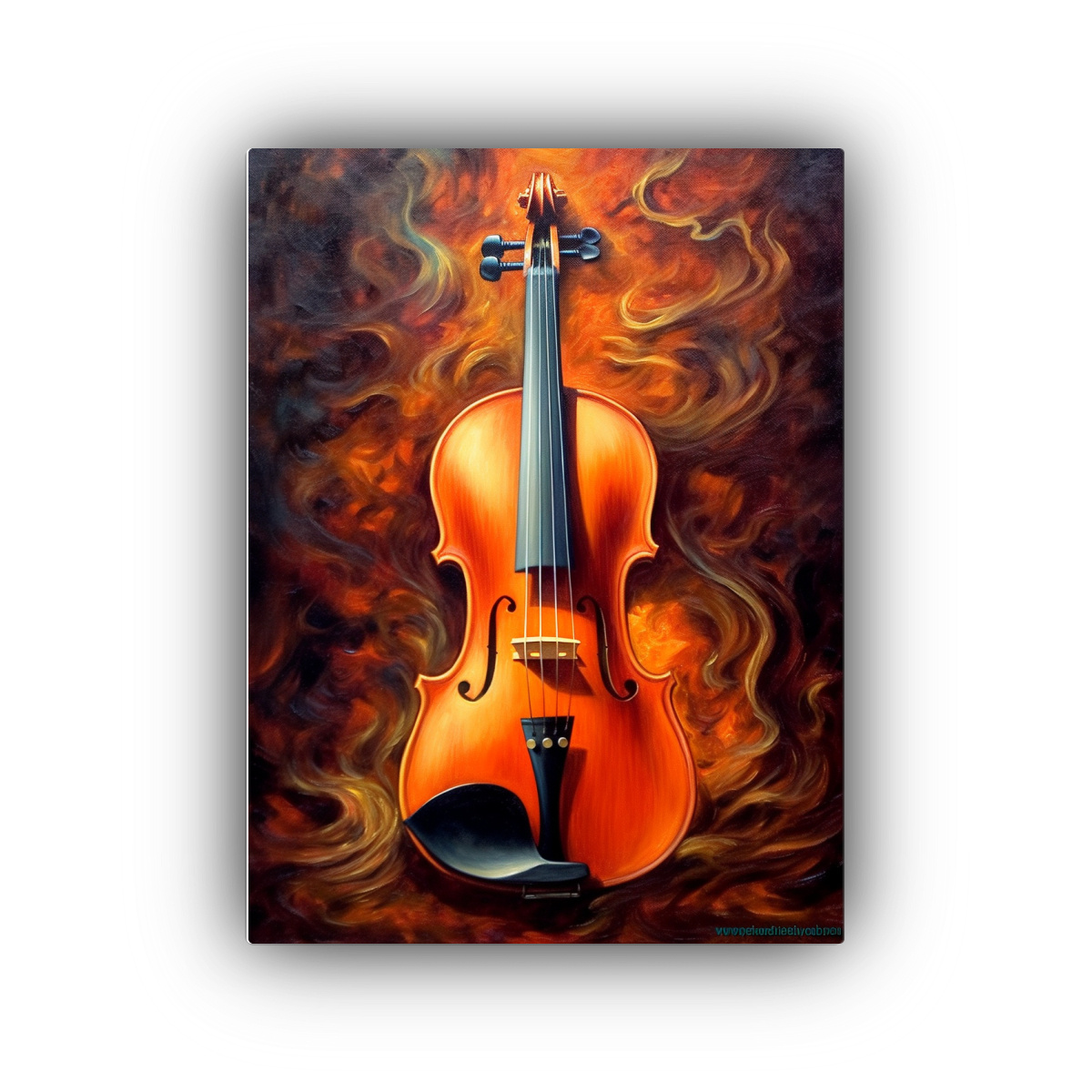 Este cuadro de violín con fondo de fuego es perfecto para decorar tu sala de estar o tu estudio de música Colócalo sobre una pared de color coral para resaltar los tonos cálidos del cuadro y combínalo con accesorios en tonos azul marino grisáceo y lila El contraste entre el violín y el fuego creará un ambiente moderno y sofisticado en tu espacio