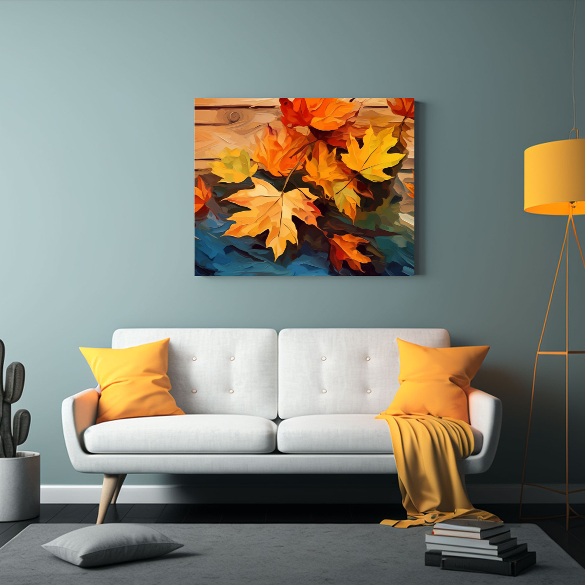 Decora tu hogar con este cuadro generativo que representa hojas de otoño en una mesa, aportando calidez y estilo Envíos gratis en Santiago y express a regiones ¡Renueva tu espacio con un toque de naturaleza y elegancia!