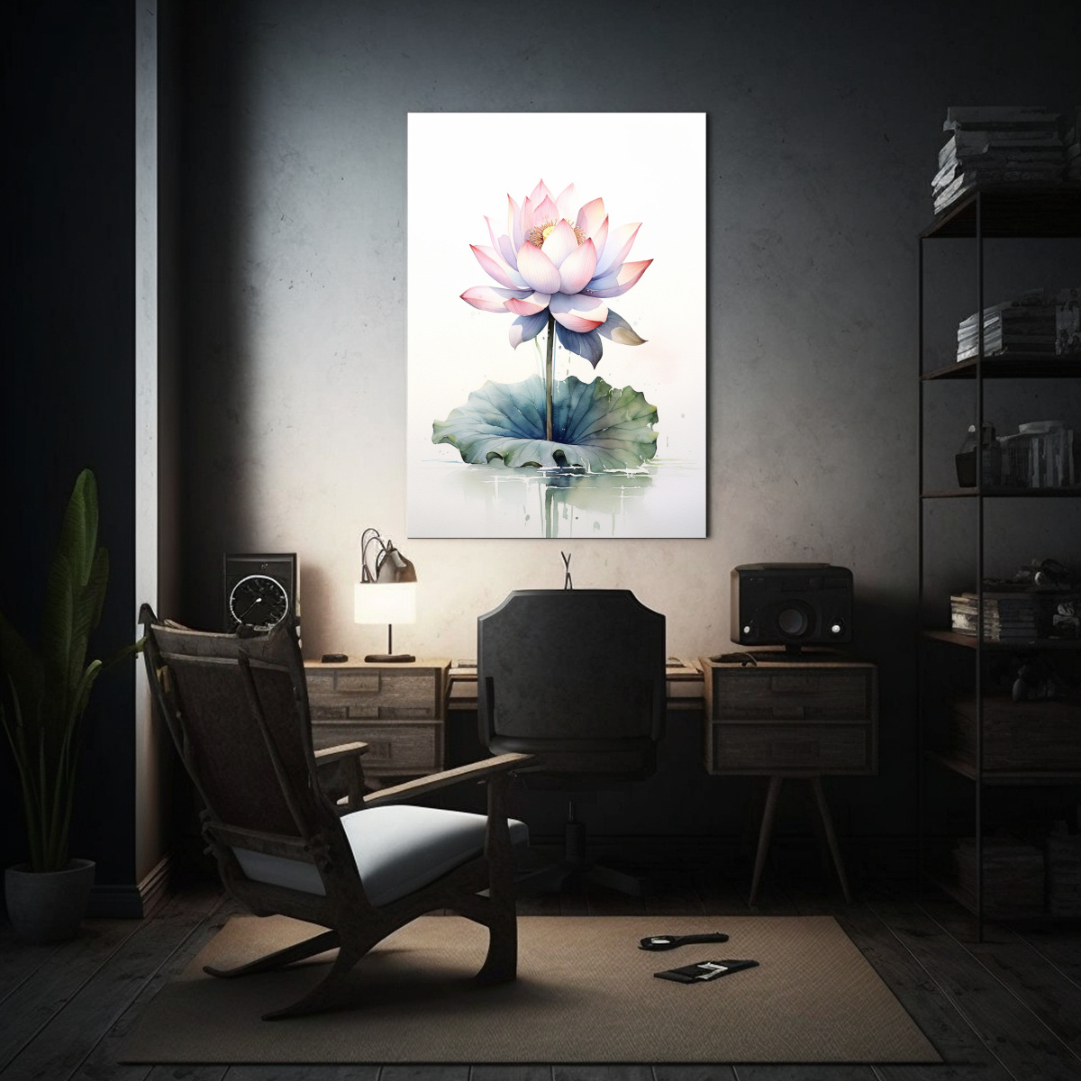 Cuadro De Decoración Culturar Loto Acuarela Fondo Blanco Menos Detalle Brillo