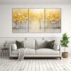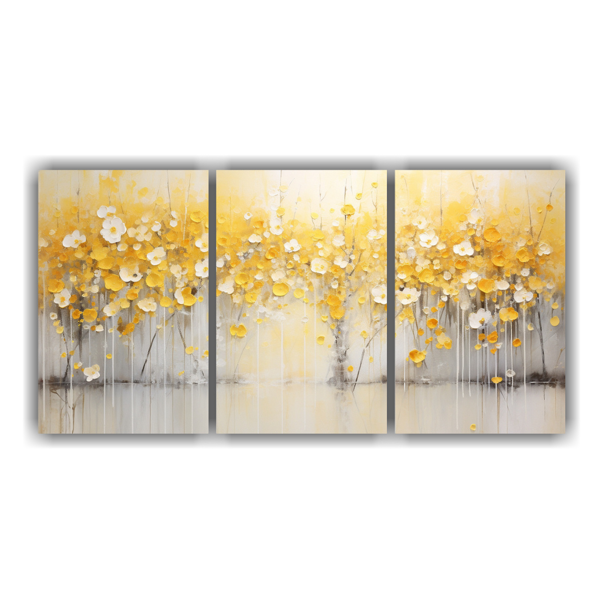 Cuadro De Decoración De Pared De La Naturaleza Viva En Amarillo Y Plateado Estilo Tres Artes