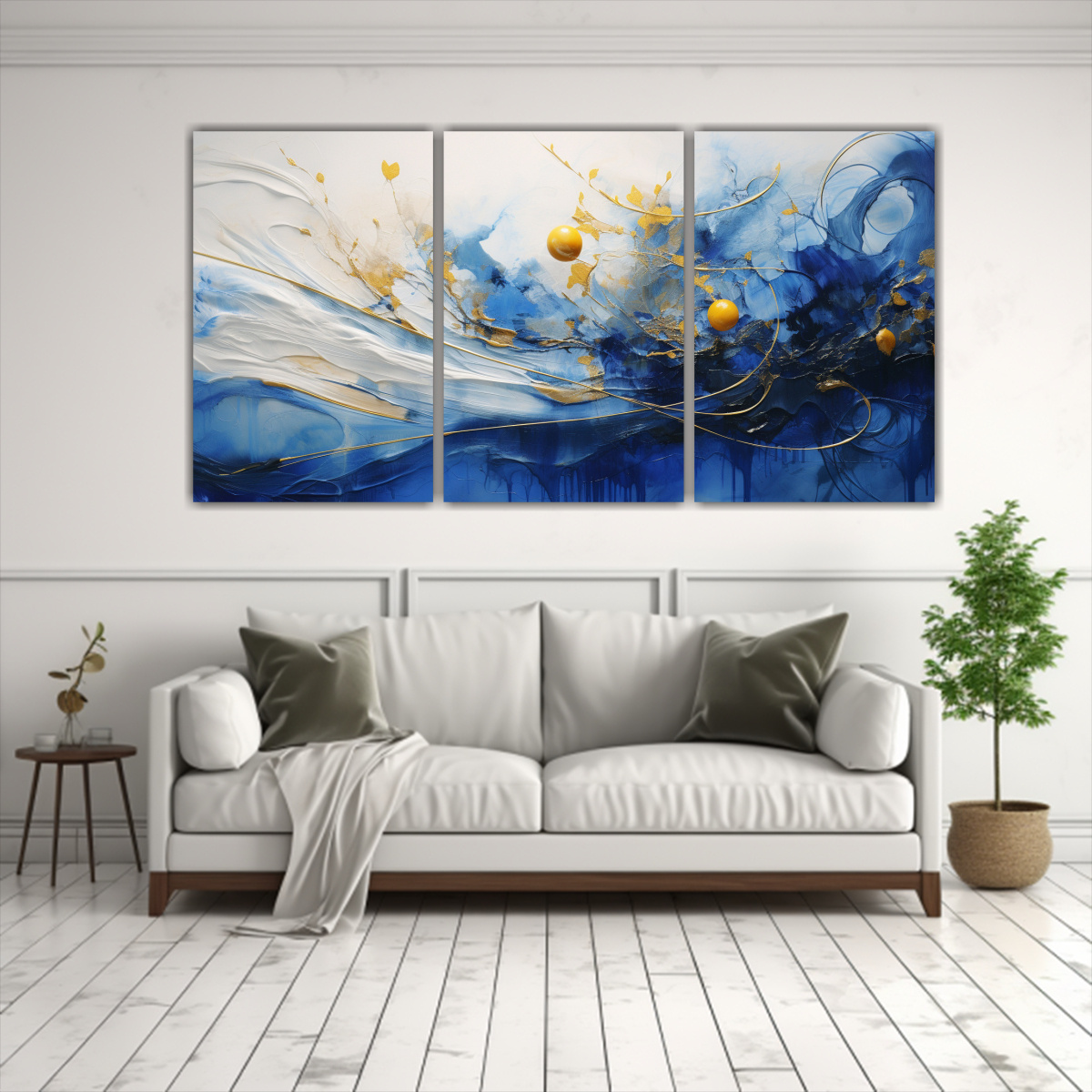 Cuadro De Decoración En Tonos Azules Y Amarillos Estilo Detallado: Visión De Tono 3 En Lienzo