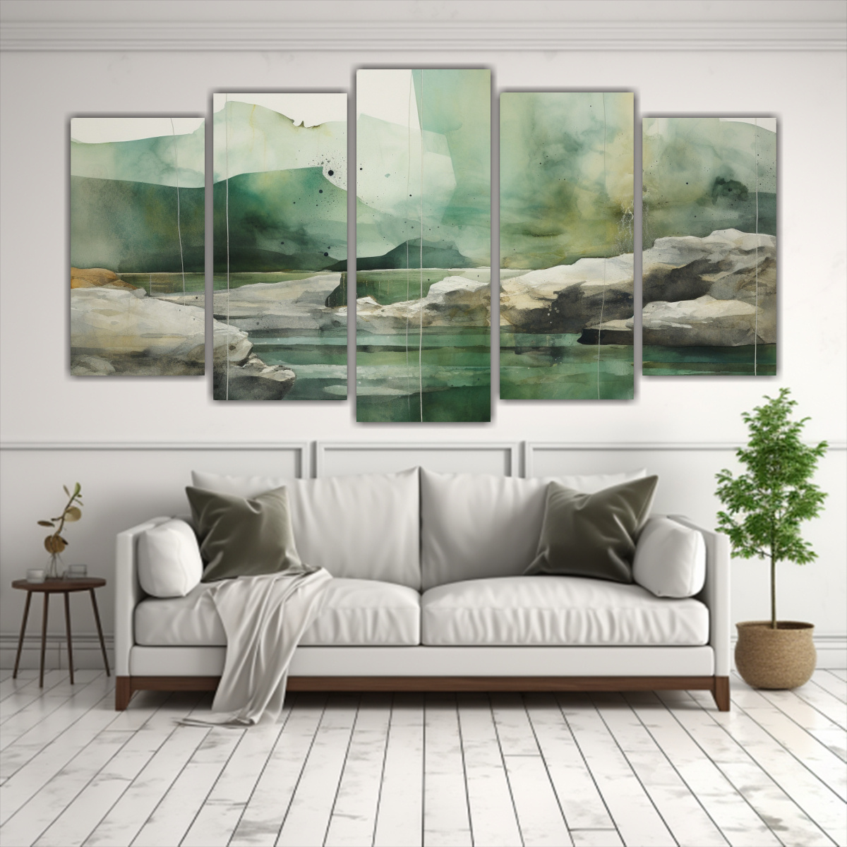 En DecoCuadros ofrecemos cuadros decorativos impresos en tela de alta calidad con bastidores de madera Nuestro cuadro de decoración estilo pintura con acuarela verde, turquesa y plateado es ideal para añadir un toque de color y estilo a tus espacios Con entregas rápidas y gratuitas en Santiago, y envíos express a regiones, no hay excusa para no renovar tus paredes