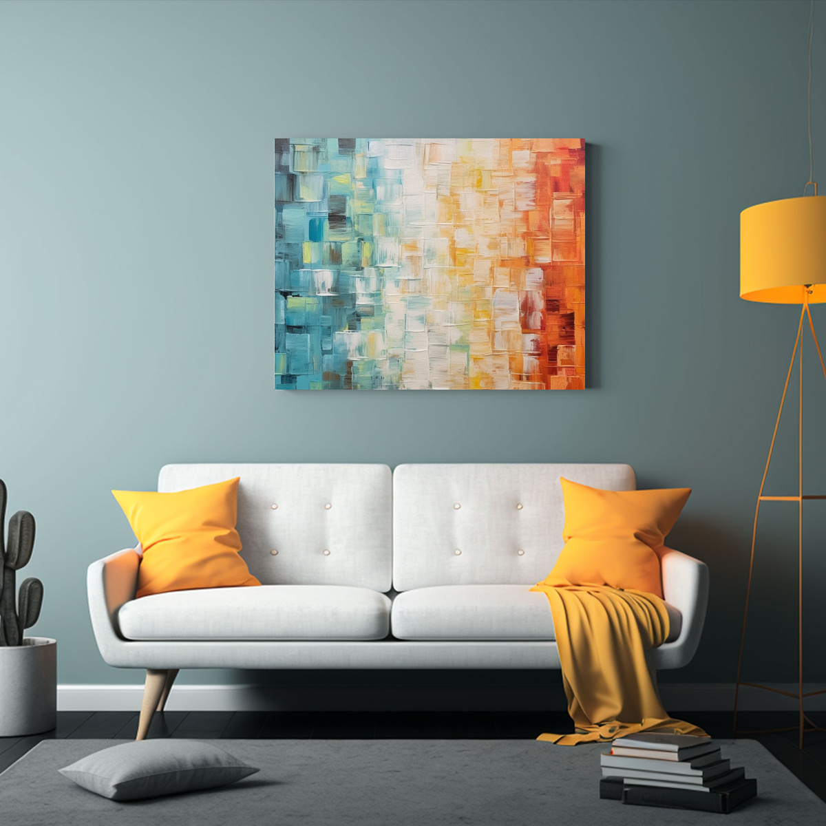 Para realzar la belleza de este cuadro, te recomendamos colocarlo en una pared libre de mobiliario, creando así un punto focal que atraiga todas las miradas Combínalo con muebles en tonos neutros para resaltar los colores vibrantes de la obra y lograr un ambiente moderno y sofisticado