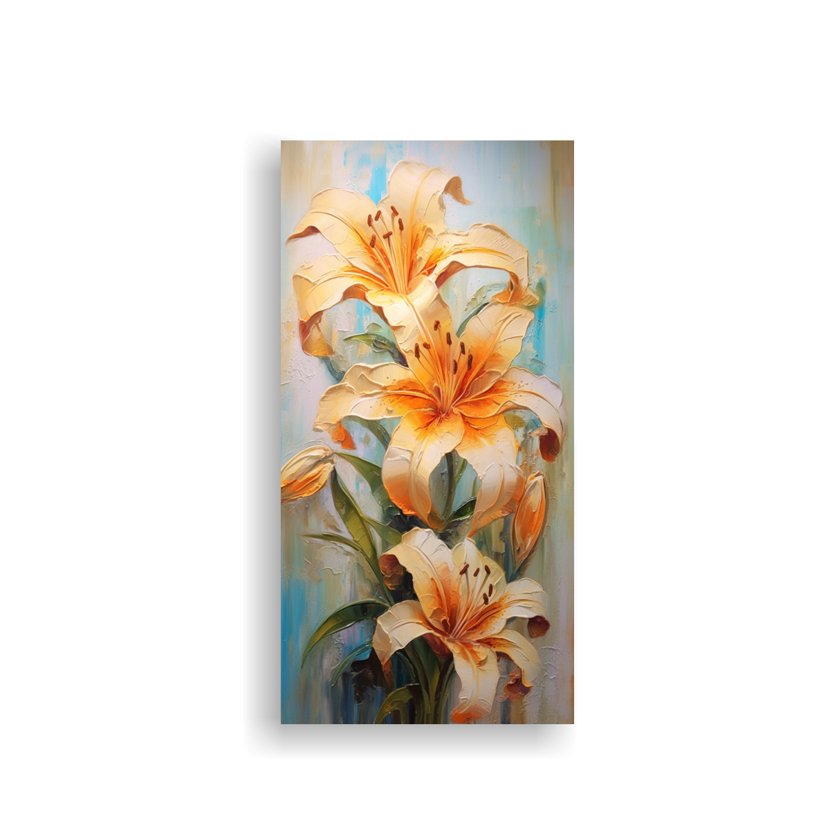 Cuadro De Diseño Único Con Lirio Colorido Y Pigmento Amarillo En Lienzo Blanco