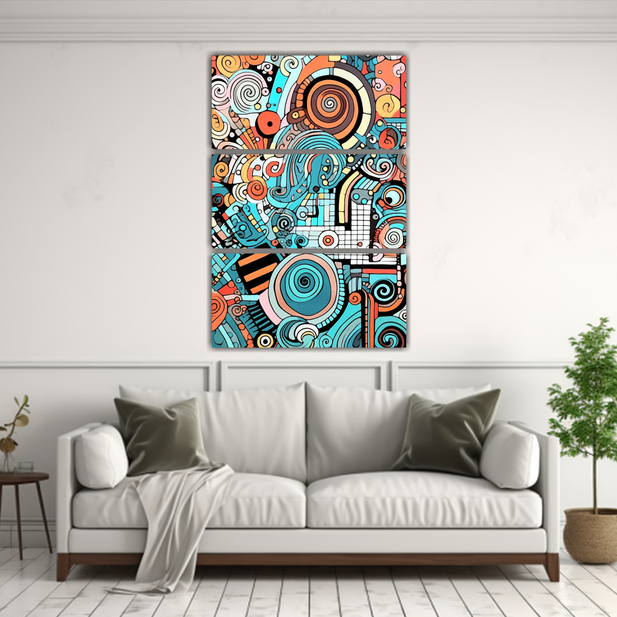 Este cuadro de espirales abstractas para colorear es perfecto para decorar una sala de estar moderna Combínalo con muebles en tonos neutros como beige o gris, y agrega toques de color con cojines o cortinas en aguamarina o coral ¡El resultado será una atmósfera elegante y vanguardista!