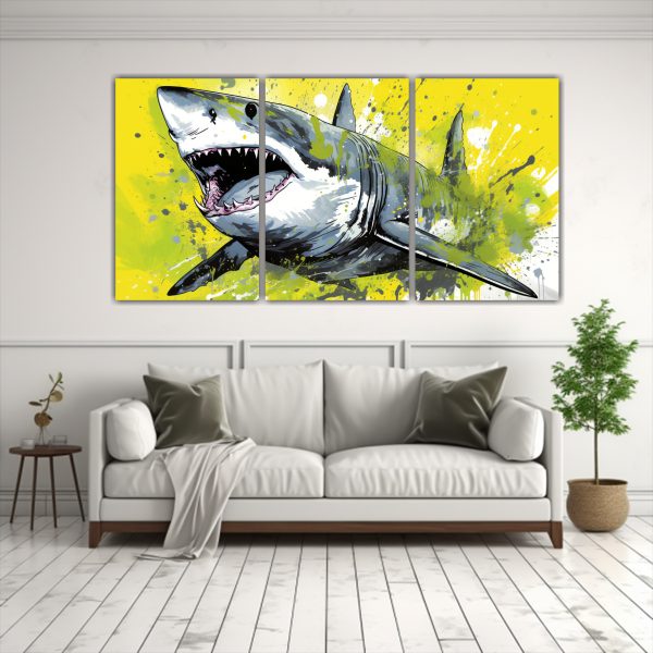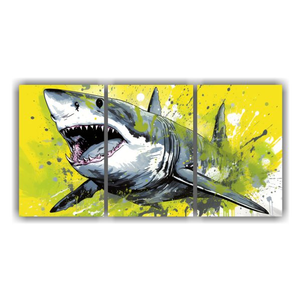 Cuadro De Expresión En Lienzo Con Un Gran Tiburón Blanco En Colores Llamativos Y Chartreuse Neo P.