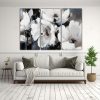Cuadro De Flores Blancas Y Negras En Bastidor: Vanguardia Original