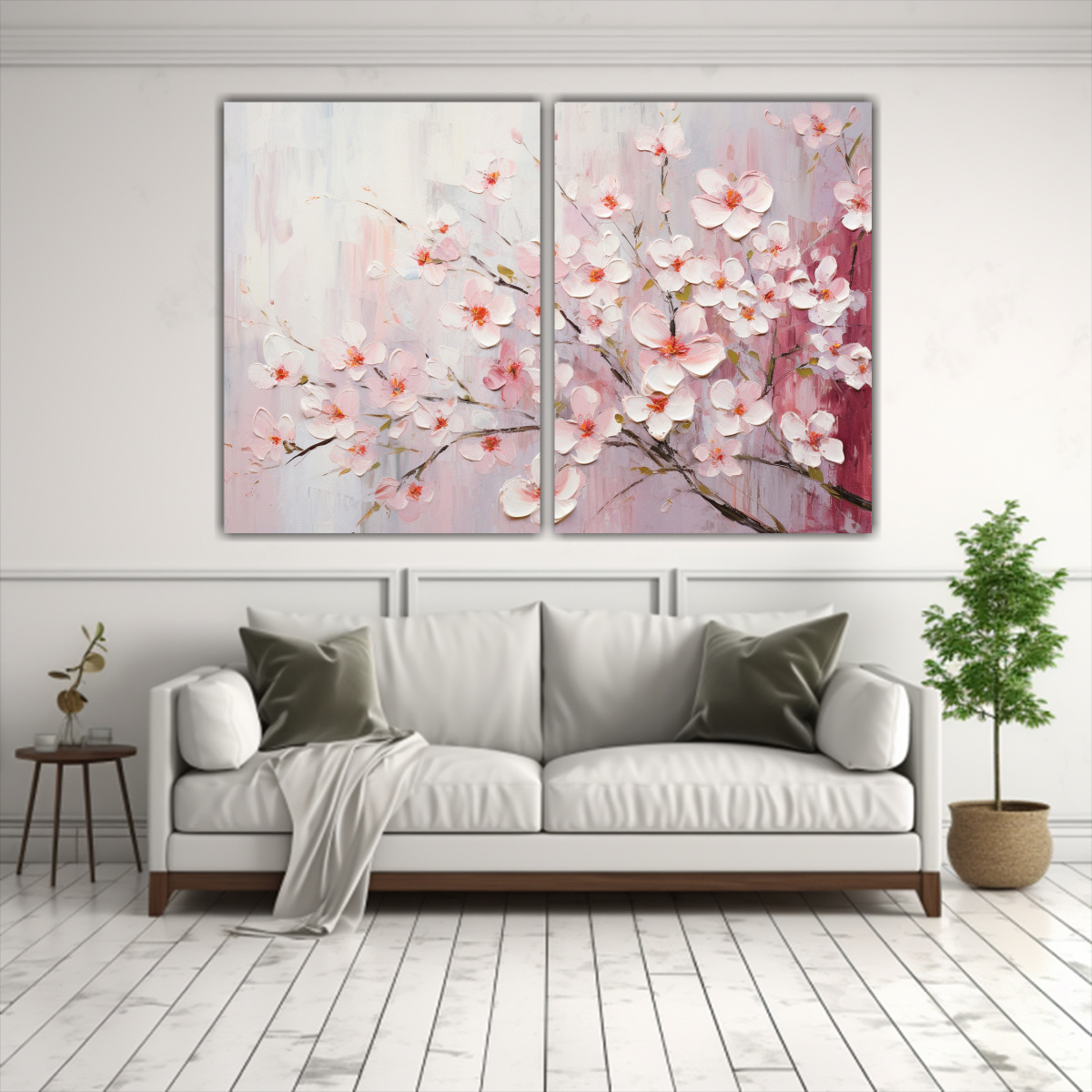 Este cuadro de flores blancas y rosas en lienzo se vería perfecto en un dormitorio o sala de estar con tonos neutros y detalles en lila o carmesí Colócalo sobre un mueble blanco para resaltar su elegancia y combinar con cojines en tonos plateados y grises para un ambiente armonioso