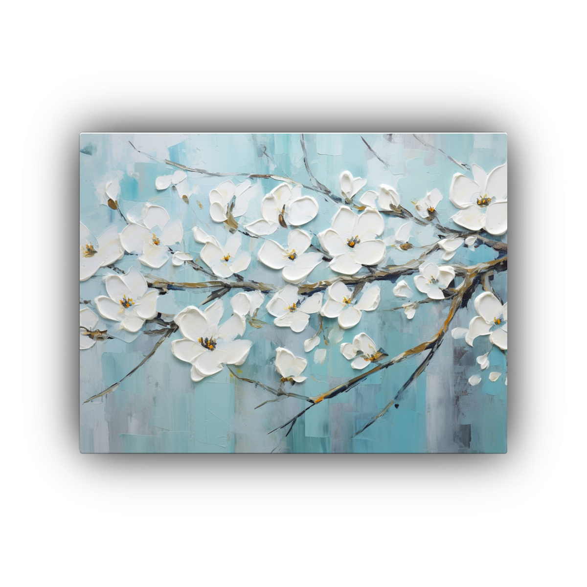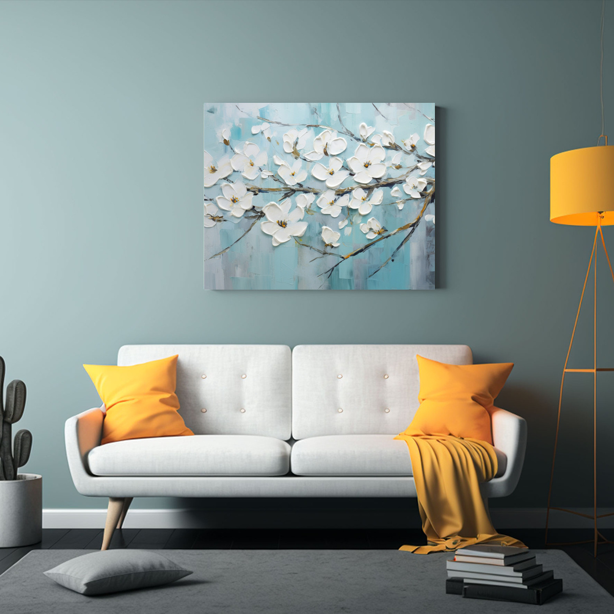 Cuadro De Flores Blanco Y Turquesa En Lienzo